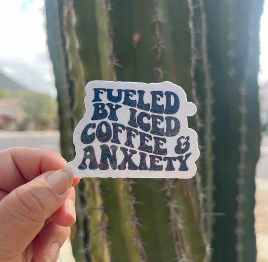 Fueled by Iced Coffee and Anxiety - Waterproof Sticker