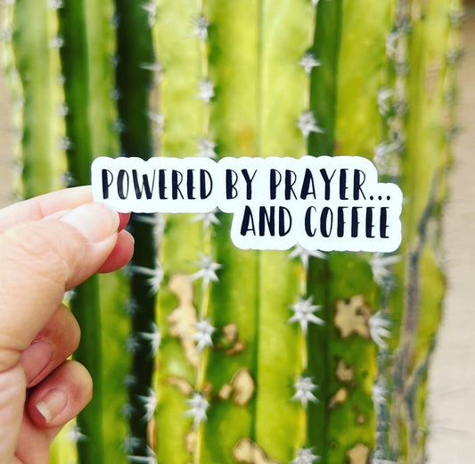 Powered by Prayer and Coffee - Waterproof Sticker