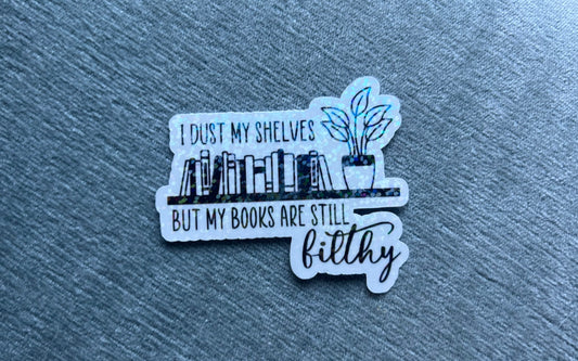 I Dust My Shelves But My Books are Still Filthy - Waterproof PRINTED Stickers