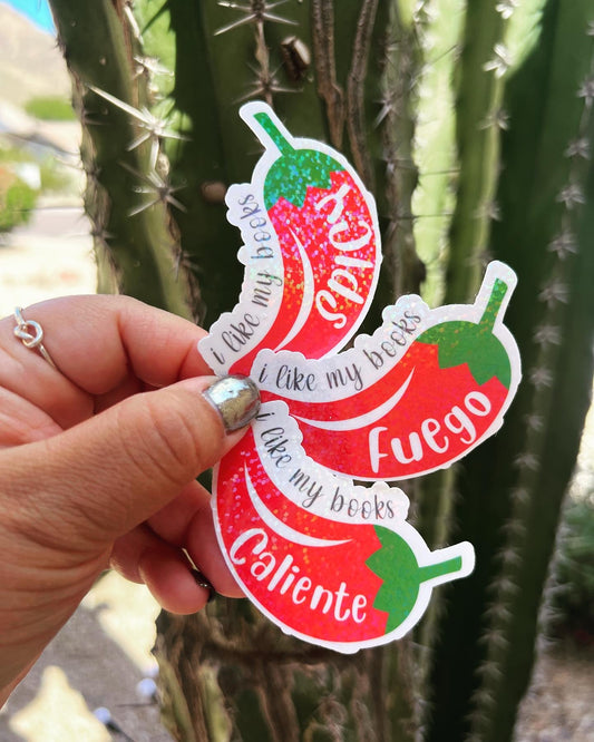 I Like My Books Caliente, Fuego, Spicy - Waterproof PRINTED Stickers