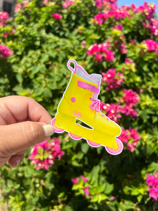 Hot Pink and highlighter yellow skates Waterproof Stickers